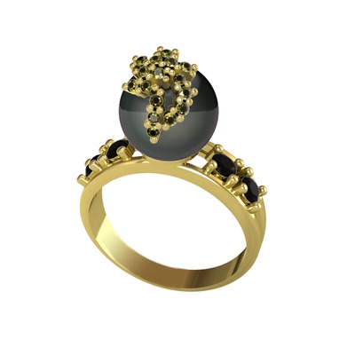 Siyah inci, peridot ve siyah zirkon 8 ayar altın yüzük