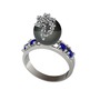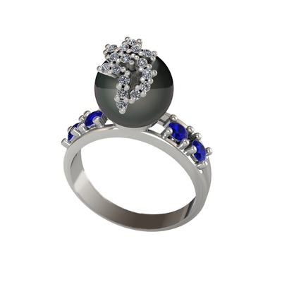 Siyah inci, pırlanta ve lab safir 18 ayar beyaz altın yüzük (0.176 karat)