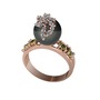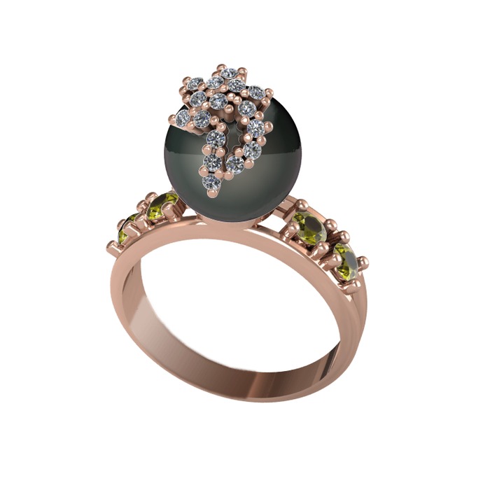 Siyah inci, pırlanta ve peridot 8 ayar rose altın yüzük (0.176 karat)