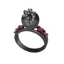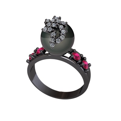 Siyah inci, pırlanta ve rodolit garnet 925 ayar siyah rodyum kaplama gümüş yüzük (0.176 karat)