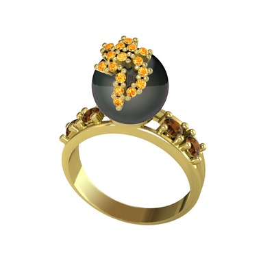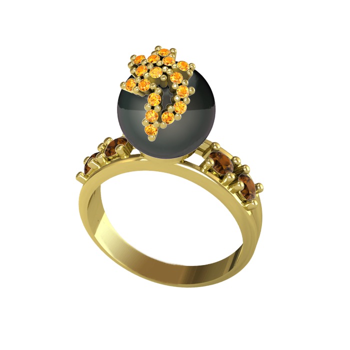 Siyah inci, sitrin ve dumanlı kuvars 18 ayar altın yüzük