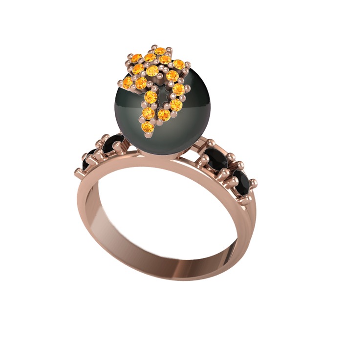 Siyah inci, sitrin ve siyah zirkon 8 ayar rose altın yüzük