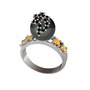 Siyah inci, siyah zirkon ve sitrin 14 ayar beyaz altın yüzük