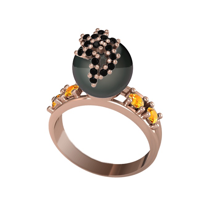 Siyah inci, siyah zirkon ve sitrin 8 ayar rose altın yüzük