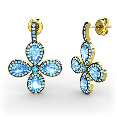 Akuamarin 14 ayar altın küpe