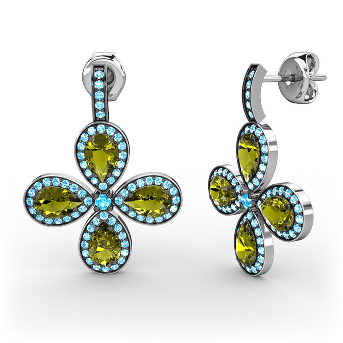Akuamarin ve peridot 8 ayar beyaz altın küpe