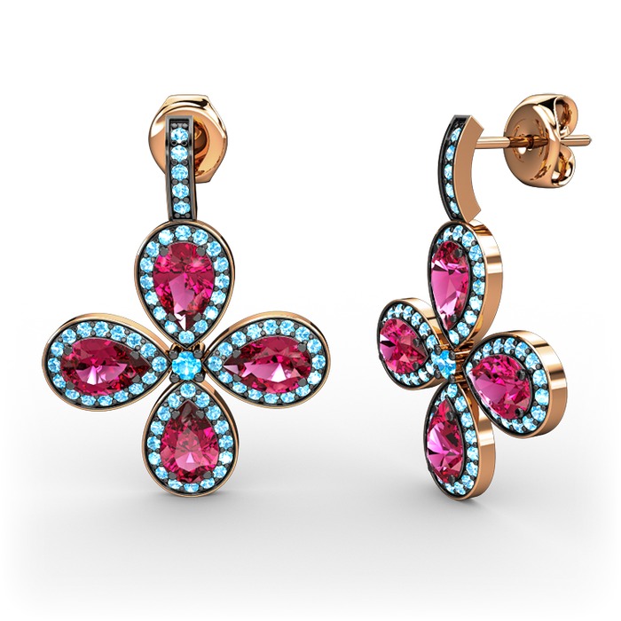 Akuamarin ve rodolit garnet 14 ayar rose altın küpe