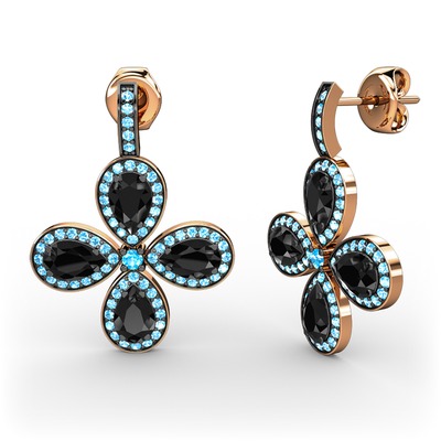 Akuamarin ve siyah zirkon 8 ayar rose altın küpe