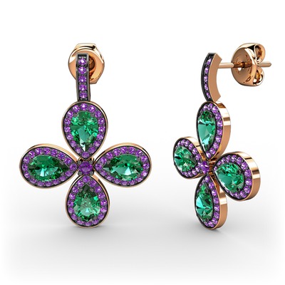 Ametist ve yeşil kuvars 18 ayar rose altın küpe