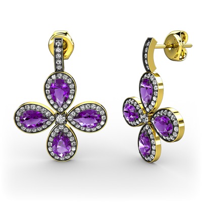 Beyaz zirkon ve ametist 8 ayar altın küpe