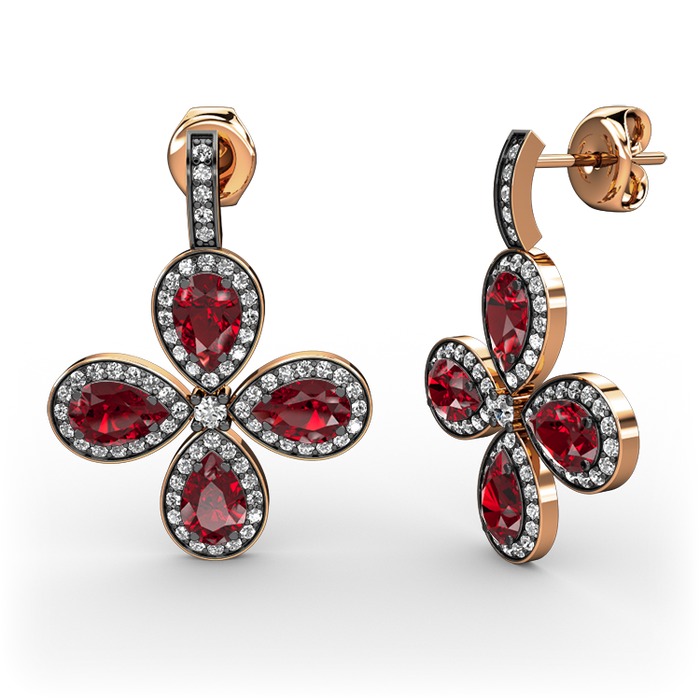 Beyaz zirkon ve garnet 8 ayar rose altın küpe