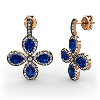 Beyaz zirkon ve lab safir 18 ayar rose altın küpe