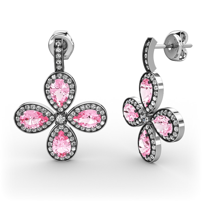 Beyaz zirkon ve pembe kuvars 8 ayar beyaz altın küpe