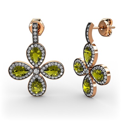 Beyaz zirkon ve peridot 14 ayar rose altın küpe