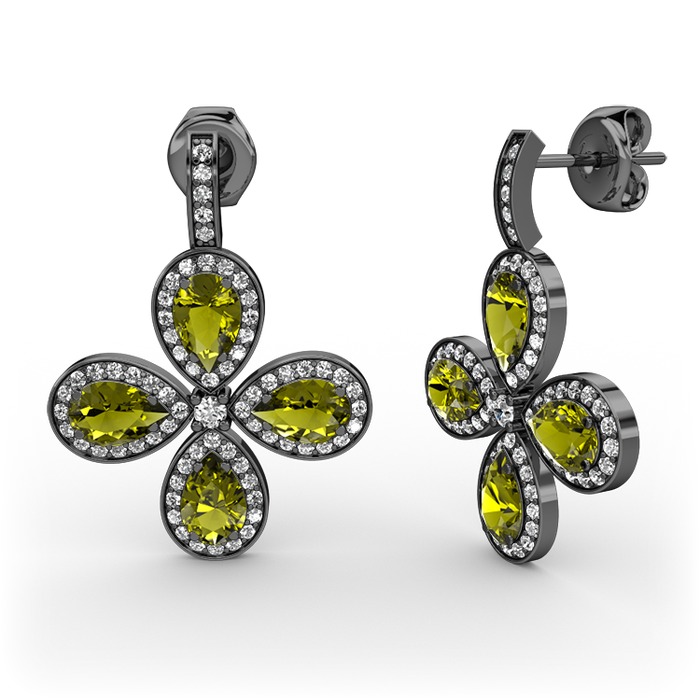 Beyaz zirkon ve peridot 925 ayar siyah rodyum kaplama gümüş küpe