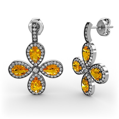 Beyaz zirkon ve sitrin 925 ayar gümüş küpe