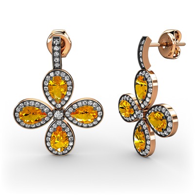 Beyaz zirkon ve sitrin 925 ayar rose altın kaplama gümüş küpe