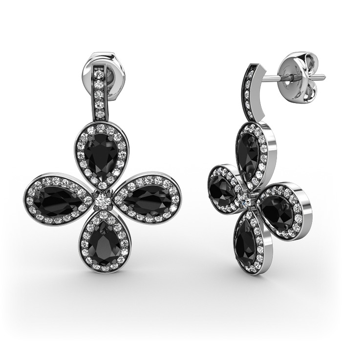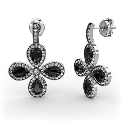 Beyaz zirkon ve siyah zirkon 18 ayar beyaz altın küpe