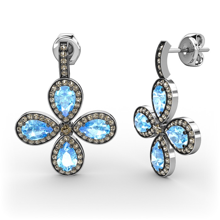 Dumanlı kuvars ve akuamarin 18 ayar beyaz altın küpe