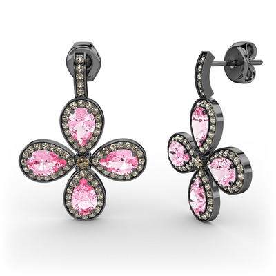 Dumanlı kuvars ve pembe kuvars 925 ayar siyah rodyum kaplama gümüş küpe