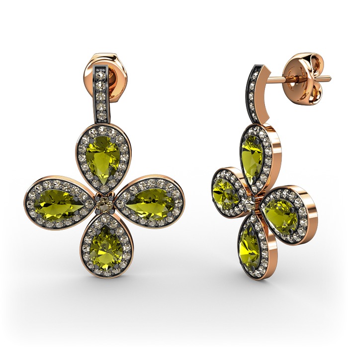 Dumanlı kuvars ve peridot 925 ayar rose altın kaplama gümüş küpe