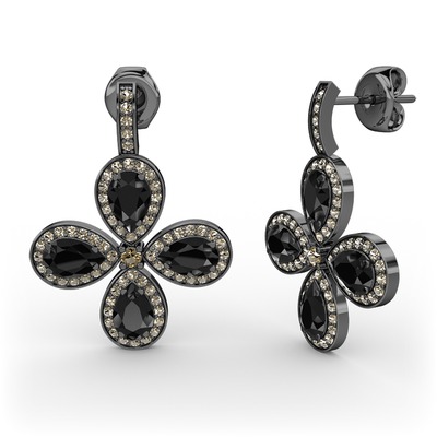 Dumanlı kuvars ve siyah zirkon 925 ayar siyah rodyum kaplama gümüş küpe