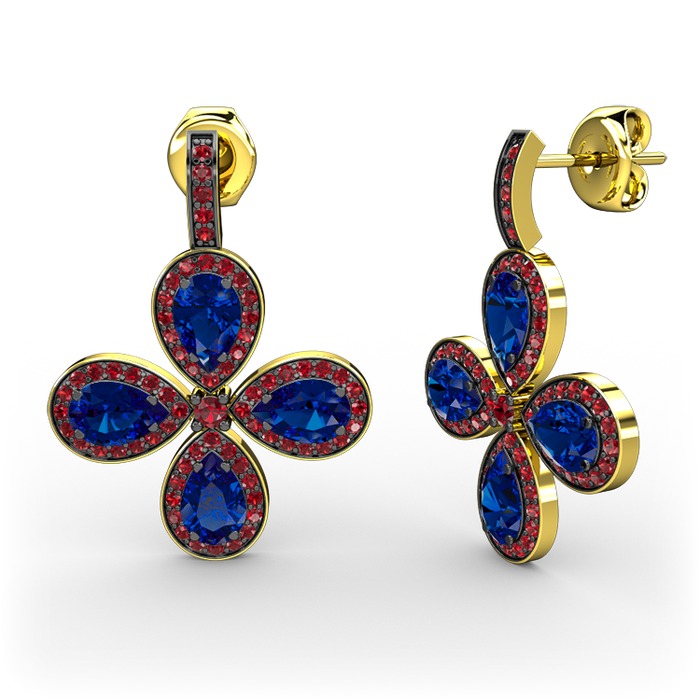 Garnet ve lab safir 8 ayar altın küpe