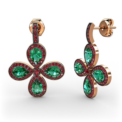 Garnet ve yeşil kuvars 925 ayar rose altın kaplama gümüş küpe
