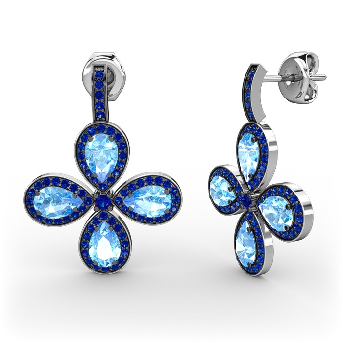 Lab safir ve akuamarin 18 ayar beyaz altın küpe