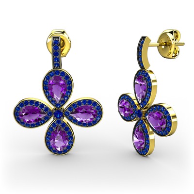 Lab safir ve ametist 14 ayar altın küpe