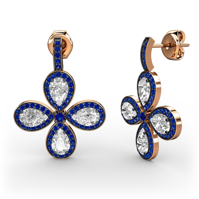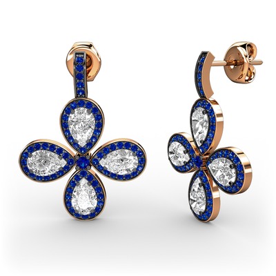 Lab safir ve beyaz zirkon 14 ayar rose altın küpe