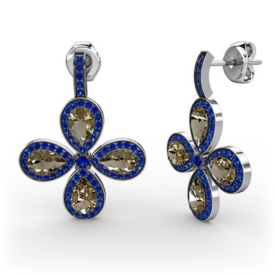 Lab safir ve dumanlı kuvars 18 ayar beyaz altın küpe