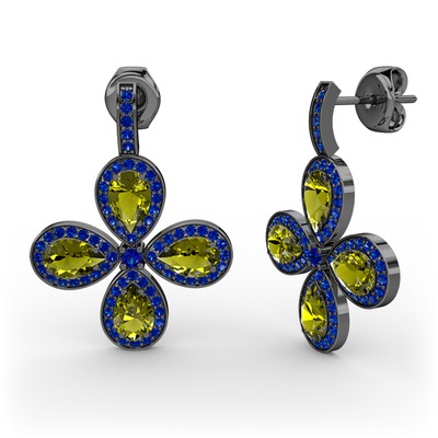 Lab safir ve peridot 925 ayar siyah rodyum kaplama gümüş küpe