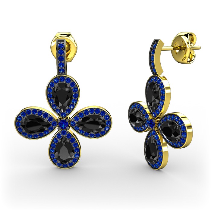Lab safir ve siyah zirkon 14 ayar altın küpe