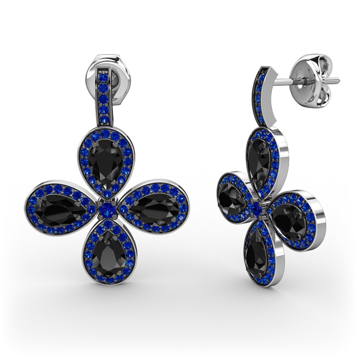 Lab safir ve siyah zirkon 14 ayar beyaz altın küpe