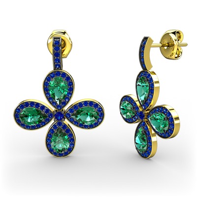 Lab safir ve yeşil kuvars 18 ayar altın küpe
