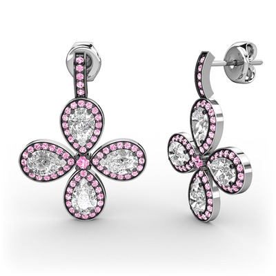 Pembe kuvars ve beyaz zirkon 14 ayar beyaz altın küpe