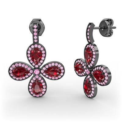 Pembe kuvars ve garnet 925 ayar siyah rodyum kaplama gümüş küpe