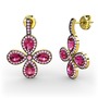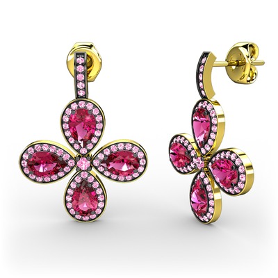 Pembe kuvars ve rodolit garnet 14 ayar altın küpe