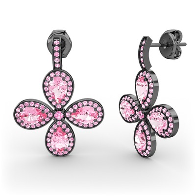 Pembe kuvars 925 ayar siyah rodyum kaplama gümüş küpe
