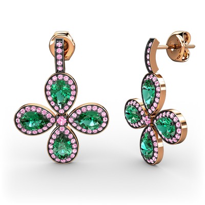 Pembe kuvars ve yeşil kuvars 18 ayar rose altın küpe