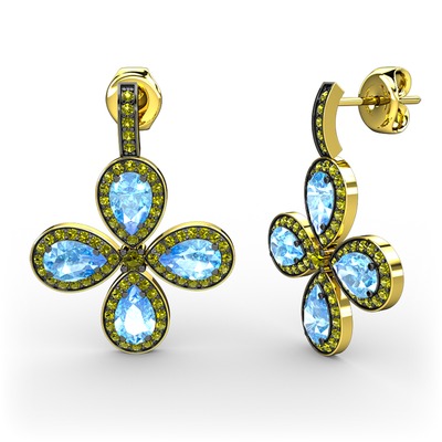 Peridot ve akuamarin 925 ayar altın kaplama gümüş küpe