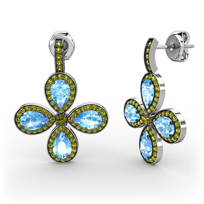 Peridot ve akuamarin 925 ayar gümüş küpe