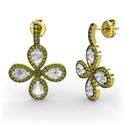 Peridot ve beyaz zirkon 925 ayar altın kaplama gümüş küpe
