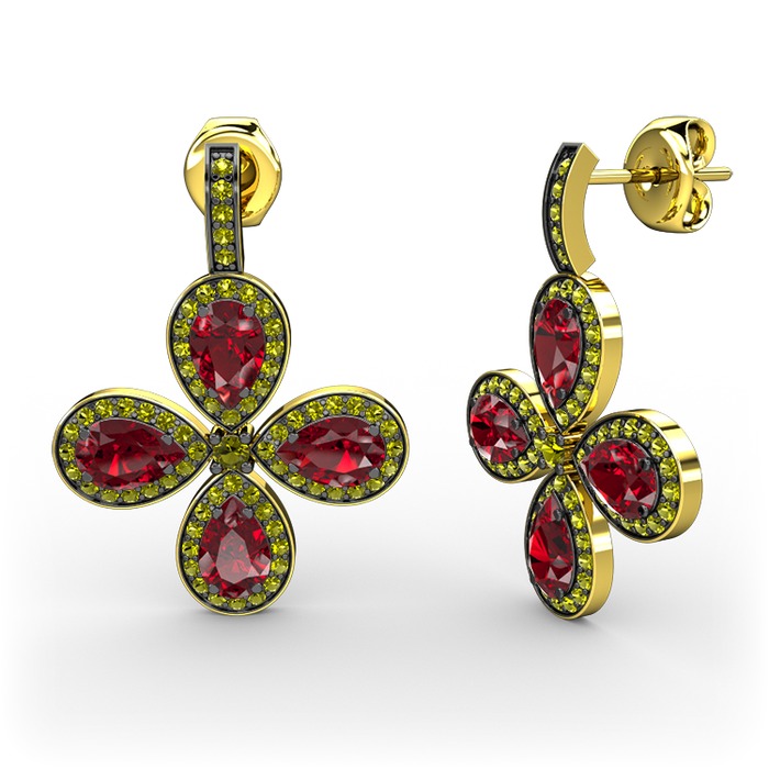 Peridot ve garnet 925 ayar altın kaplama gümüş küpe
