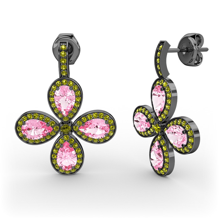 Peridot ve pembe kuvars 925 ayar siyah rodyum kaplama gümüş küpe