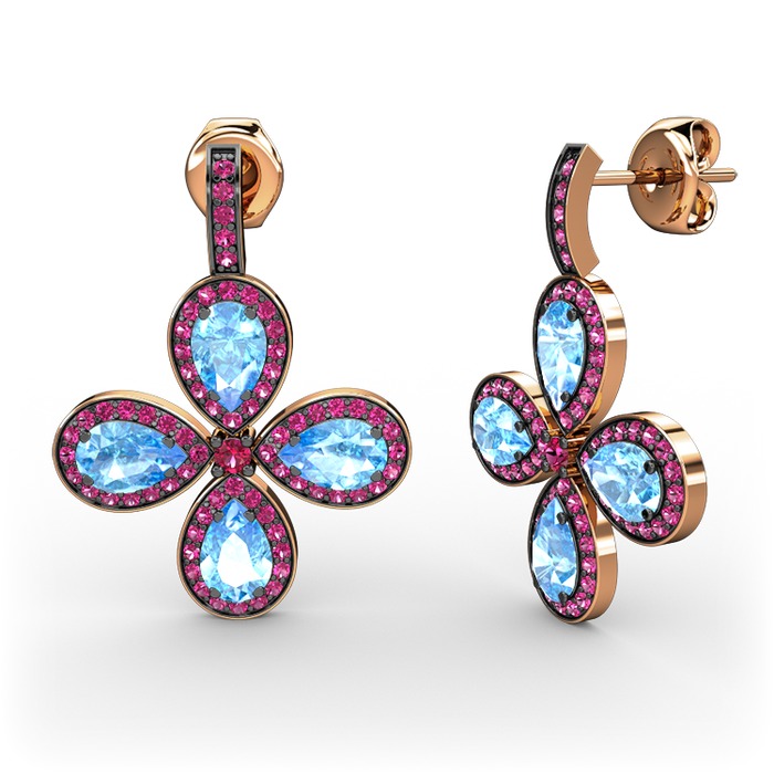 Rodolit garnet ve akuamarin 925 ayar rose altın kaplama gümüş küpe