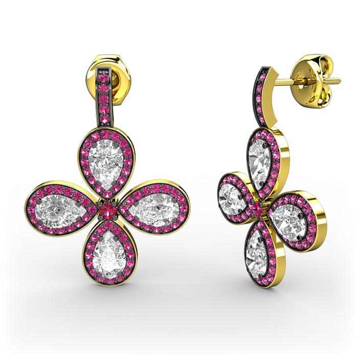Rodolit garnet ve beyaz zirkon 14 ayar altın küpe