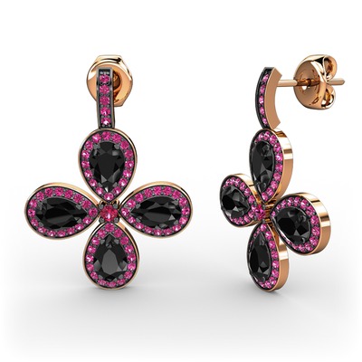 Rodolit garnet ve siyah zirkon 14 ayar rose altın küpe
