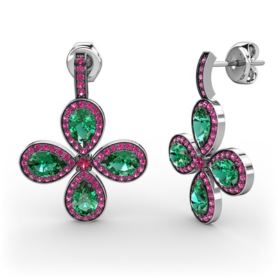 Rodolit garnet ve yeşil kuvars 18 ayar beyaz altın küpe